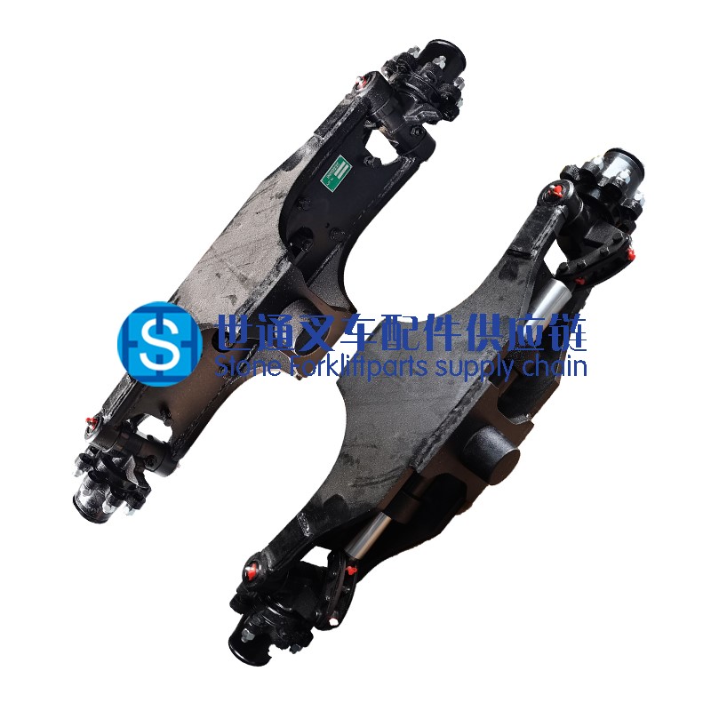 叉車轉向橋通過殼體的兩端安裝軸固定于叉車底盤車架上,靜載和空車行駛的時候,轉向橋負荷主要來源于叉車配重couter weight和 整車自重Net weight,鑒于轉向橋的設...